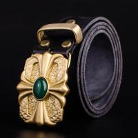 个性纯铜玉石裤带送长辈休闲中年裤腰带男士皮带真皮头层牛皮腰带