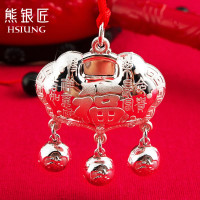 熊银匠宝宝银饰长命锁S999纯银平安锁足银婴儿银锁小孩儿童锁满月