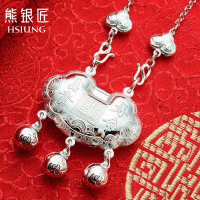 熊银匠宝宝银饰长命锁纯银平安锁S999足银婴儿银锁小孩儿童锁满月