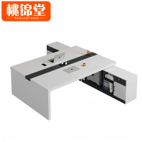 戴劲简约现代老板办公桌椅商务总裁桌大班老板台时尚经理桌主管桌家具 桌子+侧柜+椅子180长80宽75高白+浅胡桃