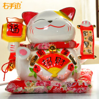 招财猫摆件 日本特大号14寸陶瓷家用存钱罐 店铺收银台开业礼品