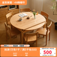 全友家居北欧原木风实木餐桌客厅可变圆折叠饭桌红橡木餐桌