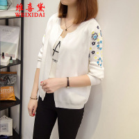 维喜黛新款韩版短款宽松刺绣花朵毛衣针织衫开衫外套