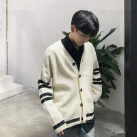 秋季男装撞色毛衣针织开衫韩版宽松休闲青年百搭男士针织衫外套潮