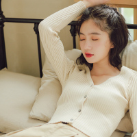 2017秋装新款女装韩版宽松百搭V领纯色学生针织衫外搭开衫秋外套