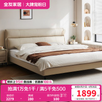 全友家居 意式头层牛皮真皮床极简风主卧室双人高脚大床