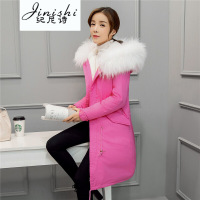 纪尼诗女装2018冬季新款韩版中长款大毛领羽绒服女收腰显瘦连帽加厚1903
