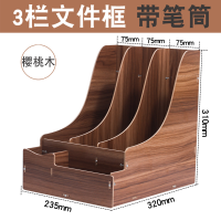 桌面收纳文件架书立架 3栏文件框 带笔筒 胡桃色 单位/个