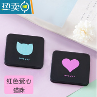 敬平小镜子随身携带可爱迷你化妆镜双面便携梳妆镜学生手持折叠镜子女 爱心款+猫咪款便携式用镜