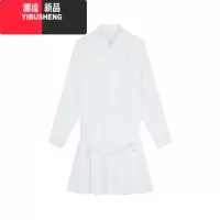 YIBUSHENG白色简约气质翻领长袖衬衫连衣裙女装季新款收腰显瘦A字裙短裙