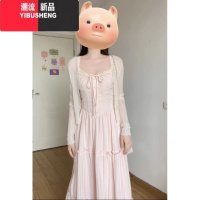 YIBUSHENG法式浪漫蕾丝拼接粉色吊带连衣裙女季2024新款甜美温柔气质长裙