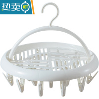 敬平多功能晾衣架多夹子旋转12夹袜子夹内衣架衣撑家用折叠晾晒裤架 白色6个装衣夹