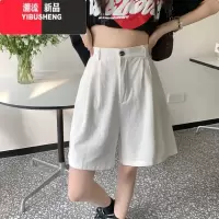 YIBUSHENG2024年季新薄款棉质中裤女高腰五分裤棉麻直筒裤百搭阔腿休闲裤