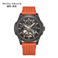 welly merck威利默克手表男新款自动机械表品牌正品防水时尚男表大表盘镂空黑迷宫腕表WM70M