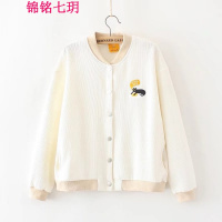 锦铭七玥秋季新款学生学院风立领猫咪刺绣灯芯绒外套女上衣64