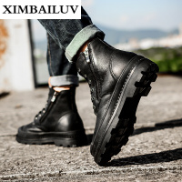路蒙卡帝品牌男士高帮休闲鞋男英伦风复古潮流工装靴子户外包头侧拉链马丁靴时尚百搭短靴男士皮靴