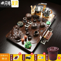 三维工匠整套茶具 实木全自动茶盘套装大号储水一体电磁炉茶台茶海茶托 井井有条+紫砂 35件