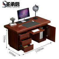 正斌办公桌台式电脑桌办公室中式家用书桌写字台单人D款胡桃色1.4米(电脑款)
