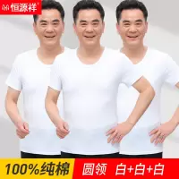 恒源祥中老年人汗衫纯棉短袖夏季全棉白色内衣男士老头衫宽松背心