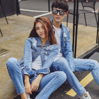 莞馨(wanxin)新款秋季韩版时尚修身潮男短款牛仔夹克女外套学生情侣装大码套装上衣