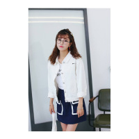 牛仔衬衫女衬衣大码宽松短款外套2018秋装新款字母印花纯棉潮CYLLSD
