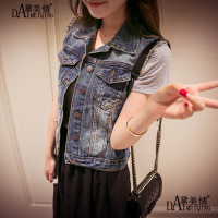 锦铭七玥淘韩版修身磨破大码牛仔马甲女潮 短款百搭显瘦无袖背心坎肩