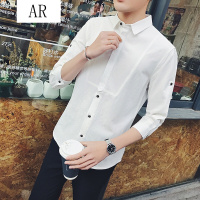 夏季七分袖衬衫男韩版修身休闲中袖衬衣服纯色百搭短袖寸衫潮