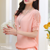 薇侣2017春装新款女装春夏季蕾丝衫短袖百搭宽松中长款小衫上衣