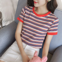 薇侣2017条纹t恤女夏新款修身韩版百搭针织打底衫时尚短袖上衣7213