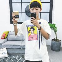2017新款短袖男潮港风青年宽松圆领夏季T恤男人物帅气印花打底衫