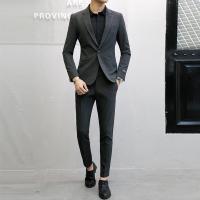 2018韩国韩版正装男士小西装修身英伦上衣外套新郎西服套装男浅灰色(西服+长裤)46(S)
