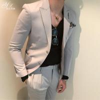 西服套装男英伦风潮韩版修身型商务休闲帅气青年个性小西装男套装浅灰色修身款西装+裤子46建议110斤内