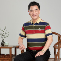 夏季新款男式T恤短袖条纹中年短袖男士商务直筒翻领男装