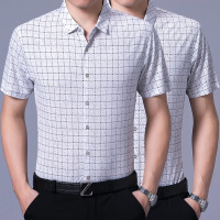 夏季简约新款中年男士免烫格子商务短袖翻领男式衬衫男装