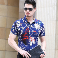 新款男式印花翻领短袖衬衫男士夏季衬衣男装休闲短袖衬衫