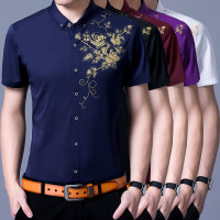 夏季印花新款男式衬衫短袖中年免烫短袖男士商务翻领男装