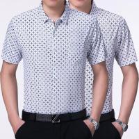 夏季简约新款中年男士免烫印花商务短袖翻领男式衬衫男装