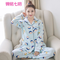 锦铭七玥[代发]纯棉磨毛长袖家居服套装经典气质翻领睡衣套装