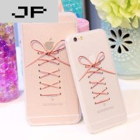 JP潮流品牌创意蝴蝶结鞋带苹果6S透明粉色浮雕手机壳iphon6 plus防摔保护套