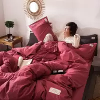 美帮汇全棉水洗棉四件套全棉床单被套日式简约床笠款三件套床上用品