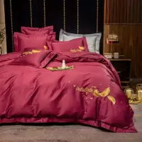 美帮汇全棉全棉床上四件套婚庆4结婚用大被子刺绣床单被套新婚用品