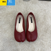 聚范小众豆豆鞋银色分趾鞋韩国网红平底单鞋红色猪脚鞋马蹄鞋女