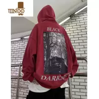 YANXU美式红色印花连帽卫衣男款休闲宽松百搭外套圆领套头上衣