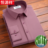 恒源祥竹纤维男士衬衫长袖春秋款商务休闲中老年爸爸装粉红色衬衣