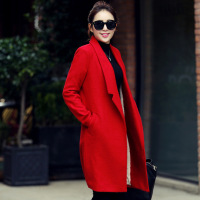 莞馨(wanxin)新款毛呢外套秋冬中长款原创主题红色加厚呢子大衣女冬装外套2016新款