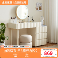 全友家居奶油风梳妆台宽大台面实木桌腿三色妆镜轻奢化妆桌妆台凳