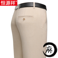 恒源祥男士亚麻休闲裤夏季薄款高腰西裤直筒裤爸爸宽松大码长裤子