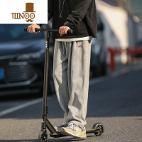 YANXU灰色运动裤男休闲裤男款卫裤抽绳长裤秋季美式直筒裤男生裤子