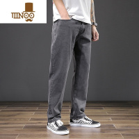 YANXU男生裤子休闲复古韩版潮流灰色2023夏季薄款直筒裤高街牛仔裤男款