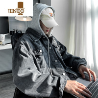 YANXU美式复古烟灰色牛仔外套男oversize设计感连帽工装夹克衬衫